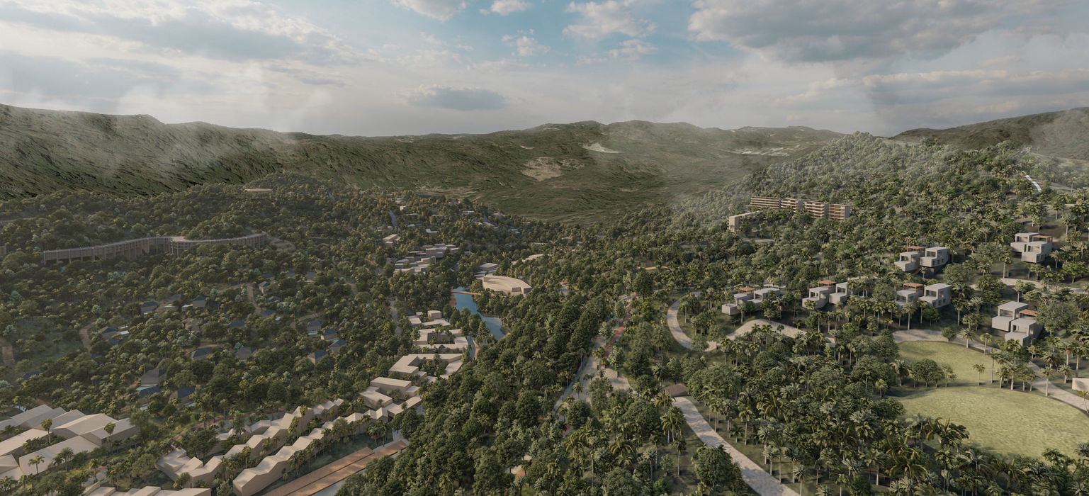 Proyecto de planeación territorial, en cuyas premisas se encuentran el desarrollo sustentable, la rehabilitación e integración de un río existente y dotar de servicios a una zona en desarrollo. Este master plan de 20 has considera en su planteamiento vivienda unifamiliar, alojamiento temporal, zona de comercios y servicios a lo largo de un gran parque lineal al borde del río, así como, zonas de ecoturismo y amenidades al aire libre. Proyecto en colaboración con IIOD, EAM Arquitectura, JAM arquitectura y Lucía Ortiz Estudio.